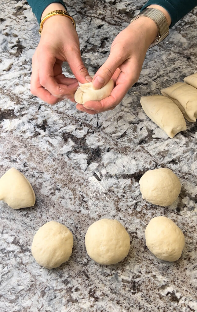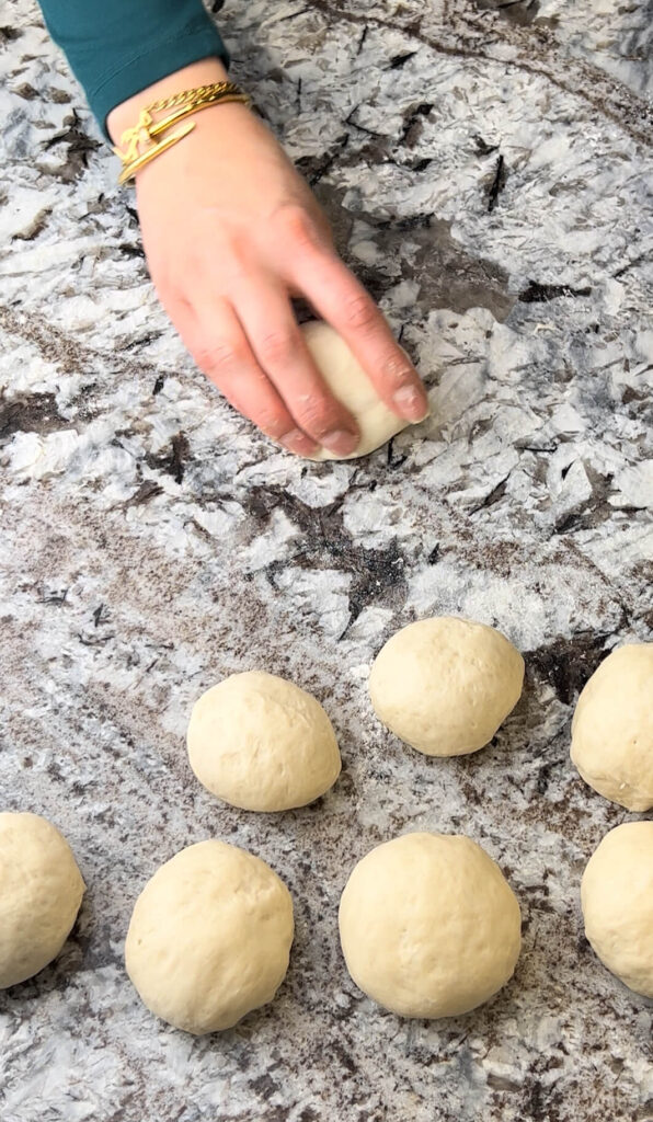 • On a clean, floured surface, divide the dough into small pieces and roll each into a ball. Cover and let rest for 10 minutes.
