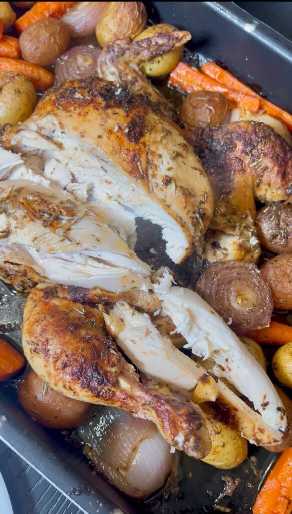 What I love even more is how reliable it is. No matter what, it always turns out delicious, comforting, and full of flavour. It’s the kind of meal that brings everyone straight to the kitchen, waiting for it to come out of the oven. Whether you’re making it for a cozy family dinner, hosting guests, or meal-prepping for the week, this roast chicken never disappoints.